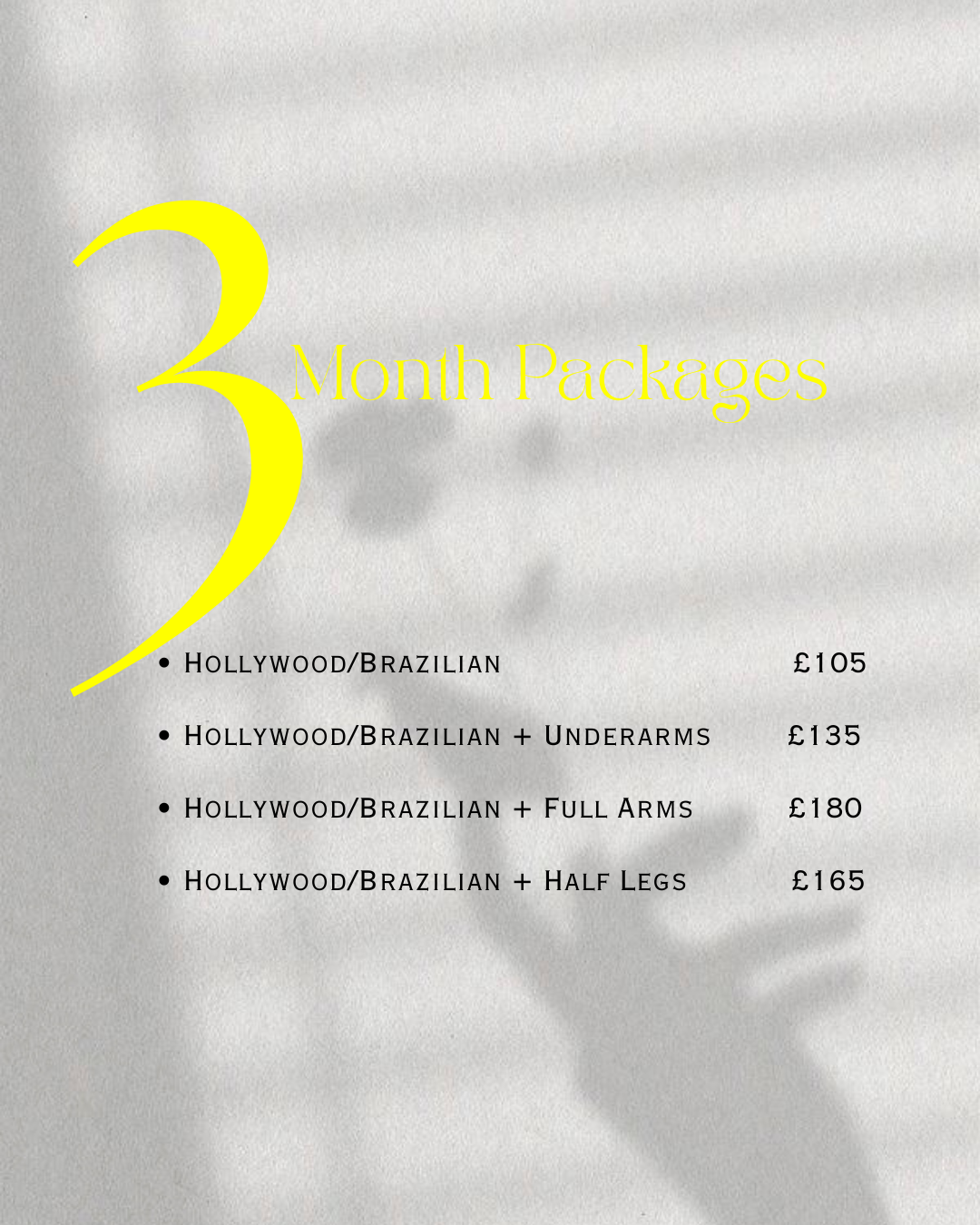 Our 3-month package includes three waxing treatments that you can use anytime within 3 months.